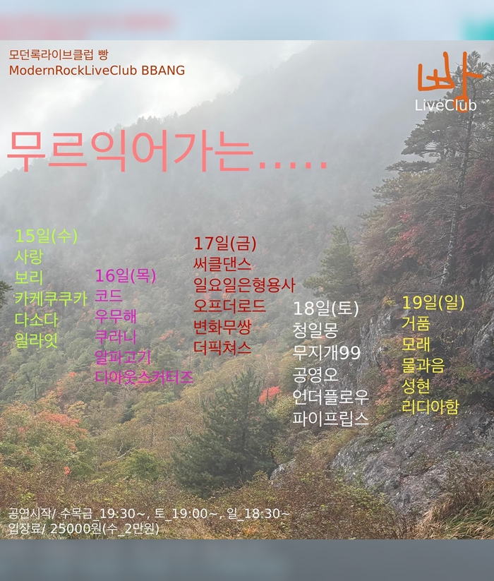 월요일을 기준으로 최근 1주일 동안 새로 추가된 공연들 목록입니다. 파란색 글씨로 표시됩니다.